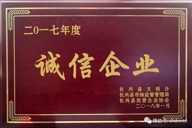 • 德恩特長興生產基地榮獲“誠信企業”稱號